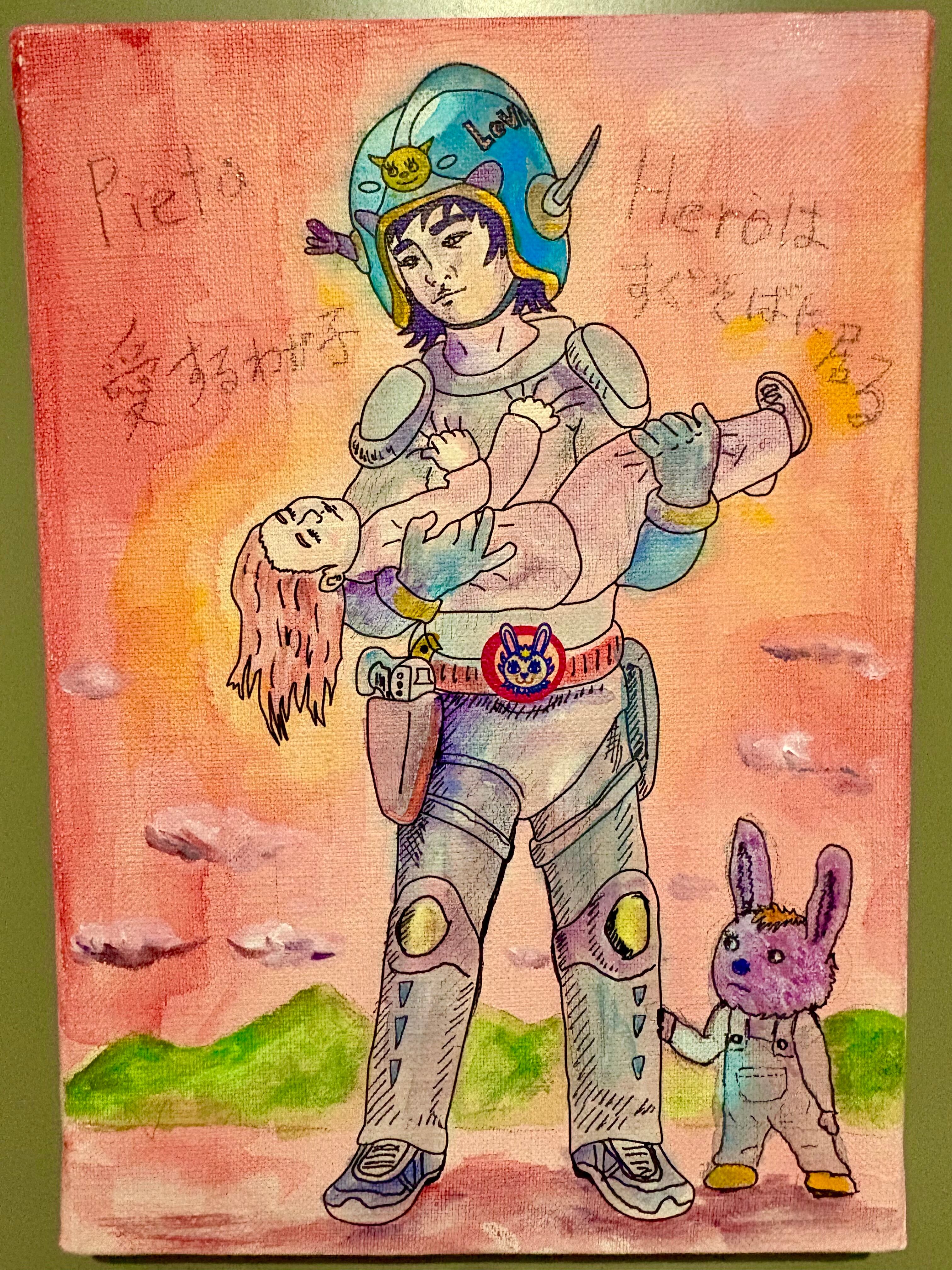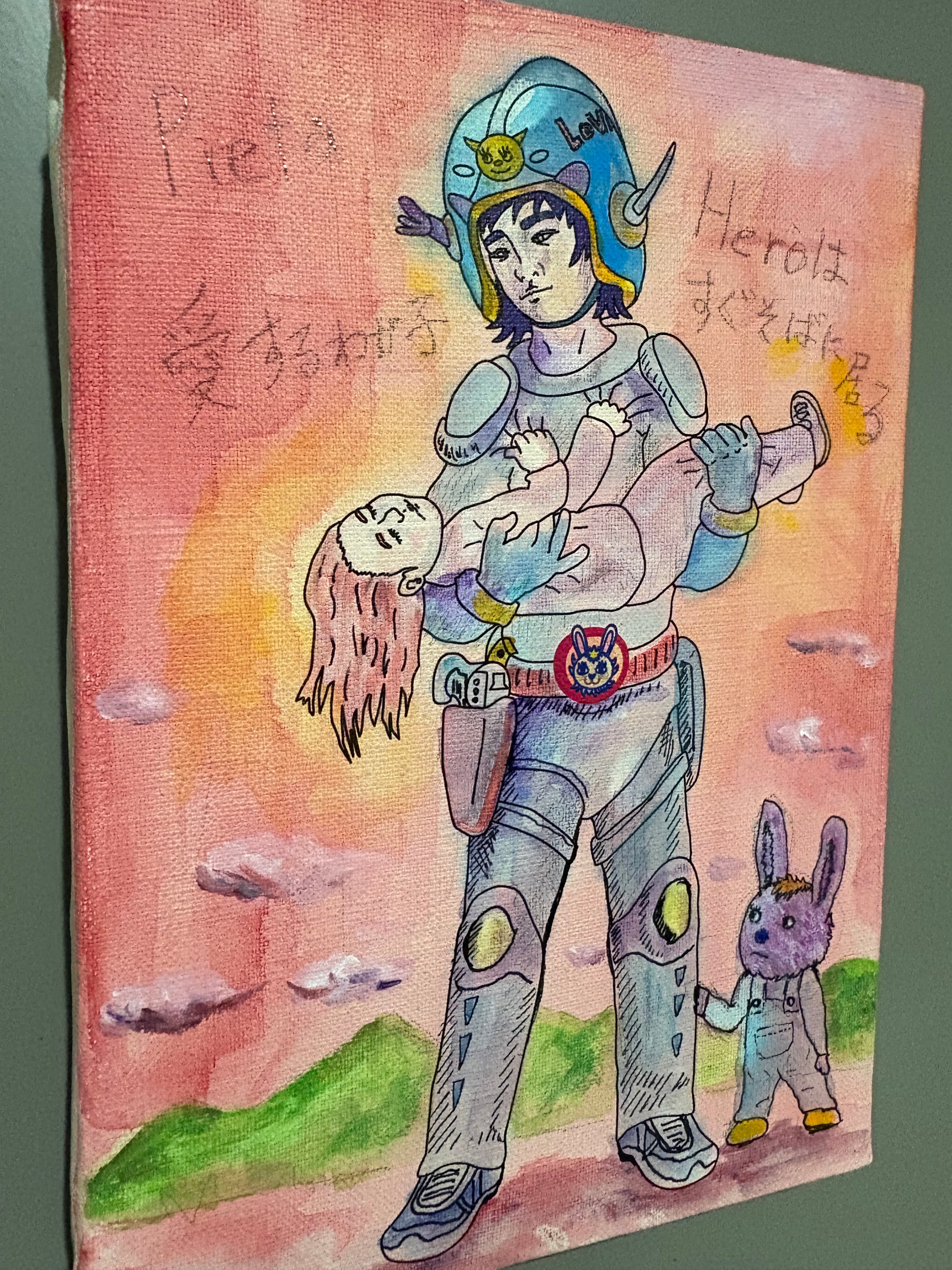 キャンバス、木枠、インク、水彩
